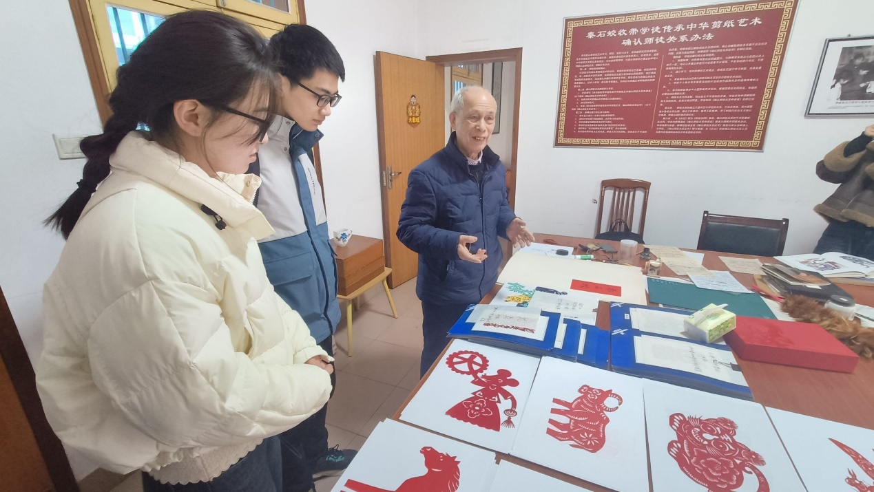 在华夏剪纸博物馆,团队成员们欣赏了从全国各地收集而来的优秀的剪纸艺术作品,领略了剪纸艺术的独特魅力。他们亲手拿起剪刀和纸张,跟随传承人的指导,创作出自己的剪纸作品。在参观完博物馆后,团队成员和老馆长进行了交流,老馆长向团队成员介绍了华夏剪纸艺术的起源和特点,团队成员也向老馆长询问了一些有关剪纸传承方面的问题,他们表示深刻体会到了剪纸艺术的简洁与纯粹,以及其中蕴含的深厚文化内涵。