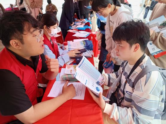 图为实践队成员在摊位向学生介绍广东石油化工学院的特色专业的场景