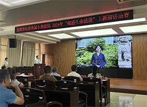 决赛当天,李宁处长莅临现场为选手们加油。拉拉队以高昂的热情为选手们呐喊助威。“继往开来,再创新篇;演讲台上,尽显风采;邓湘淋,加油!”观众席掌声雷动,邓湘淋在热烈的掌声中开始了她激动人心的演讲《生命通道,你为我撑起一片天》。