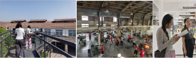 最后一站,团队成员来到了颜神古镇,颜神古镇位于山东省淄博市博山区山头街道,是以古窑集群为特色的传统街区,这里是淄博窑的发祥地,自北宋开始,这里就陶瓷业兴盛、匠人云集,至今还保留着13座古圆窑、连片的明清古建筑群和50至80年代的老旧工厂。团队成员参观历史悠久的“古窑村”研学基地,了解古代匠人们的陶瓷制作工艺,弘扬传承工匠精神,随后团队成员进行实地问卷调研,了解周边游客对淄博陶琉研学基地建设的意见和建议。
