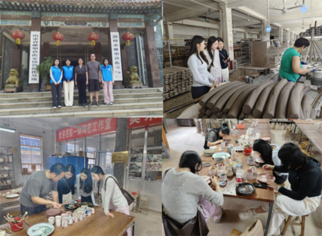 第二站团队成员来到了北国陶苑——一钵陶艺工作室,活动现场,陶瓷艺术家兼校外合作导师王凯老师进行了精彩的讲解。向团队成员介绍了陶瓷的历史渊源、传统工艺以及现代创新应用,团队成员对陶瓷艺术有了更加深入的了解。随后展示了陶瓷绘画的基本技艺,从釉料到技法每一个环节都充满了艺术的魅力,团队成员进行花釉立粉盘手工绘制体验,沉浸式体验陶瓷文化的魅力。