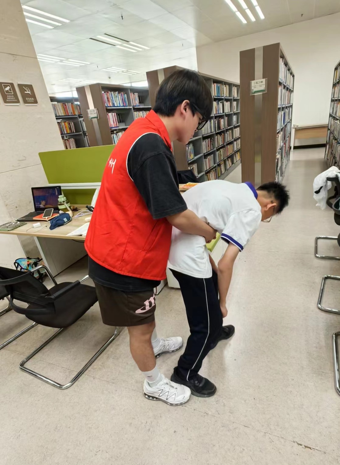 6月 28 日至7月4日,在队长的带领下,我组第一小队前往郑州市图书馆进行志愿服务工作和急救知识宣传工作。队员们按照图书馆要求规整分类书籍,协助工作人员维持秩序,分工明确、积极配合,迅速高效地完成工作,使图书馆的书籍干净整齐、摆放正确。期间,他们还为读者普及急救知识,详细介绍心肺复苏、海姆立克急救法等基本急救知识,进行实地演示和相互急救演练,并发放急救知识宣传单,让读者对急救的作用和意义有了更深认识,了解更多急救知识以应对紧急情况,充分体现了我校同学做事认真、从不懈怠的品质。
