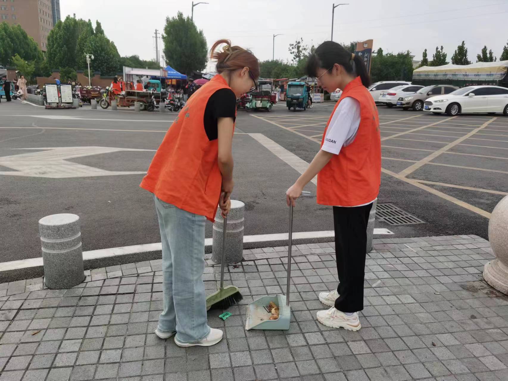 活动伊始,在环保宣传区,居民们可以了解到垃圾分类、节能减排、绿色出行等环保知识,加深对环保理念的理解。在队长王淼的带领下我们也帮助居民们打扫了小吃街道并且帮助把散乱的非机动车摆放整齐,教居民们做好垃圾分类。