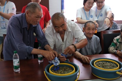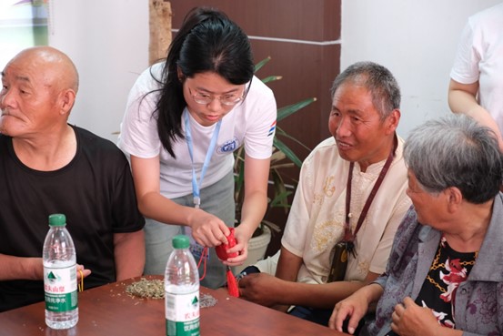 为了让老人们更加了解中医药文化,结合老人的生活常识和需要,实践团队精心策划了“制作手工香囊”活动,带来了诸多香囊空袋和带有一定驱蚊、安眠的中草药,陪同老人一起制作香囊,让老人们体会到中医药文化与现实生活的密切关系,也切实发挥中医药的效用。