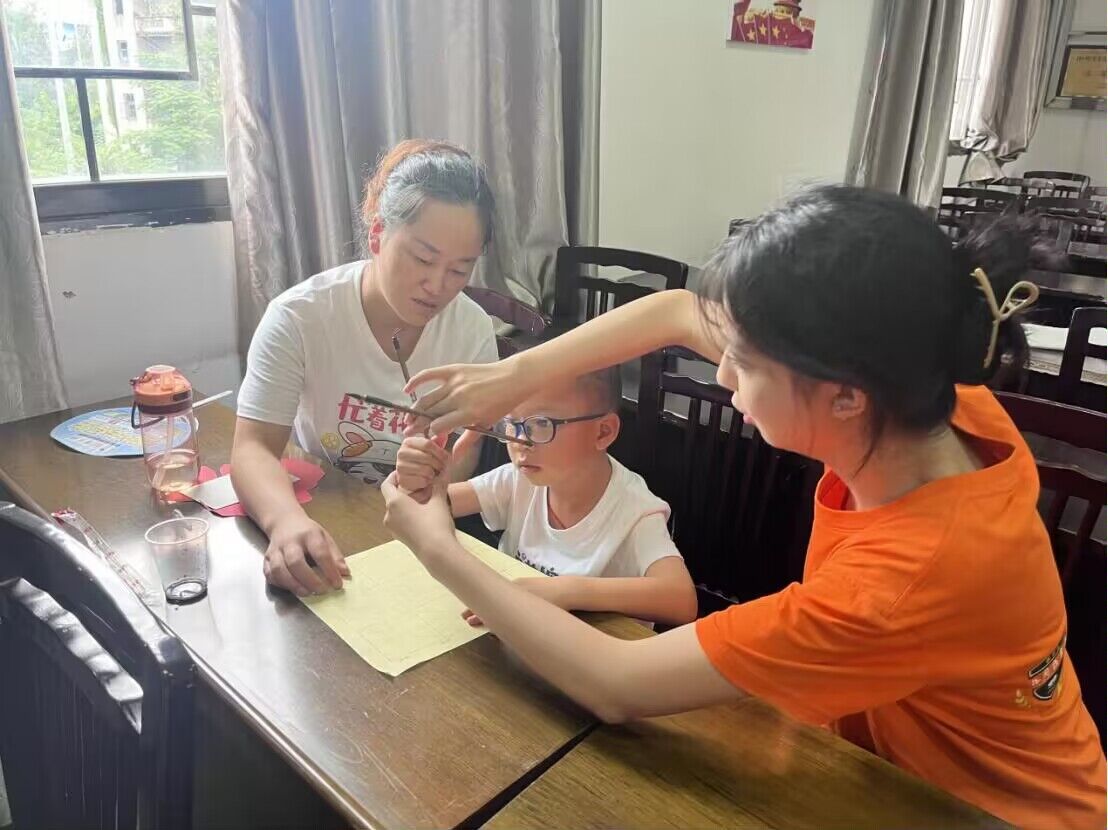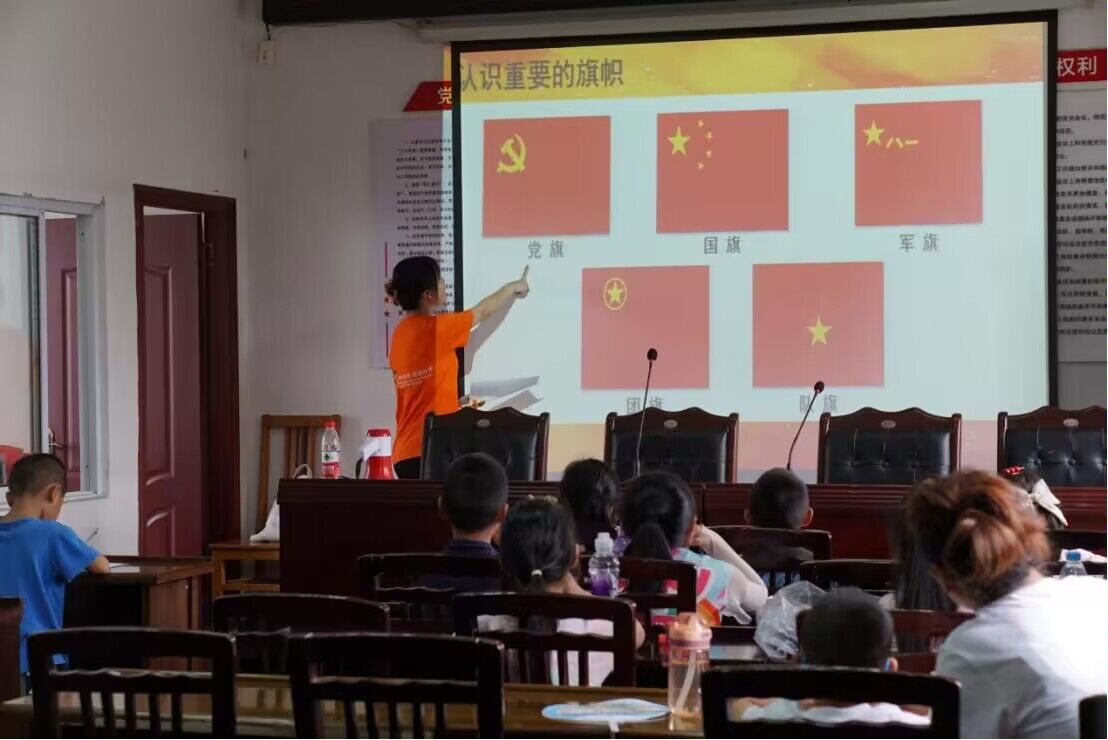 支教活动现场,志愿者们的教学材料、生动有趣的讲解方式以及耐心细致的指导,赢得了孩子们的热烈欢迎和积极参与。在认识红色旗帜的课堂上,孩子们踊跃发言,分享自己对国旗的理解和感悟。在手工剪纸课堂上,孩子们围坐在志愿者身边,认真聆听指导,小心翼翼地折叠、裁剪,享受着创作的乐趣。在学习书法课堂上,孩子们更是屏息凝神,一笔一划地模仿着志愿者的示范,力求将每一个汉字都写得工整美观。整个课堂氛围活跃而有序,志愿者与孩子们之间的互动频繁而温馨。
