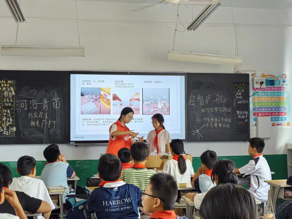 洛阳7月10日电 6月,河南科技大学校友工作志愿者协会“河洛青苗,启智护航”助学筑梦实践团成员一同前往洛阳市涧西区大所村的大所学校进行实践活动,通过授课、采访等方式为孩子们开拓视野,了解乡村教育情况,为乡村教育行业贡献微薄之力。