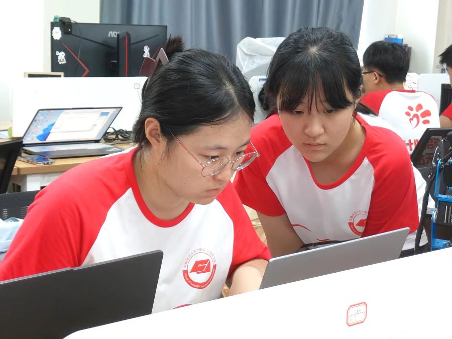 合影后,团队技术组各组成员在实验室开展智能高效除草机的研究。第一组成员任务是规划小车按照规定路线自动行走;第二组是在电脑上实现准确杂草识别;第三组是让机械臂自动抓取绿色物体。最终拟达到利用先进的激光技术,实现高效、环保的除草。