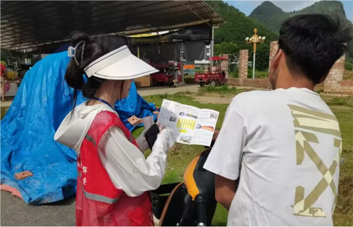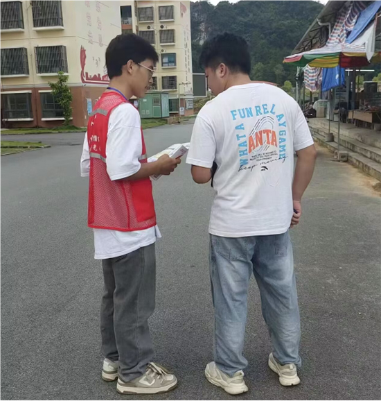 活动当日,实践团成员分工有序、协作紧密。一部分成员在村口精心设立咨询点,为来来往往的村民发放反诈宣传资料,并以耐心细致的态度为村民讲解常见的诈骗手段,其中包括网络诈骗、电话诈骗、短信诈骗等,同时向村民传授实用的防范技巧。他们还充分利用广播,扩大宣传范围,让反诈声音传遍整个村庄。