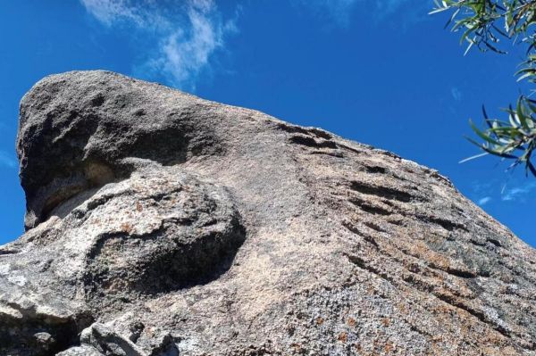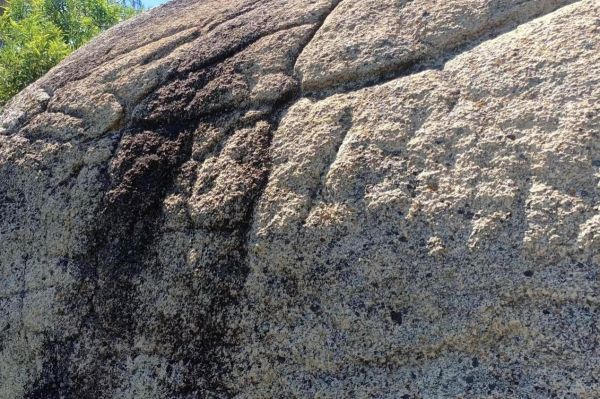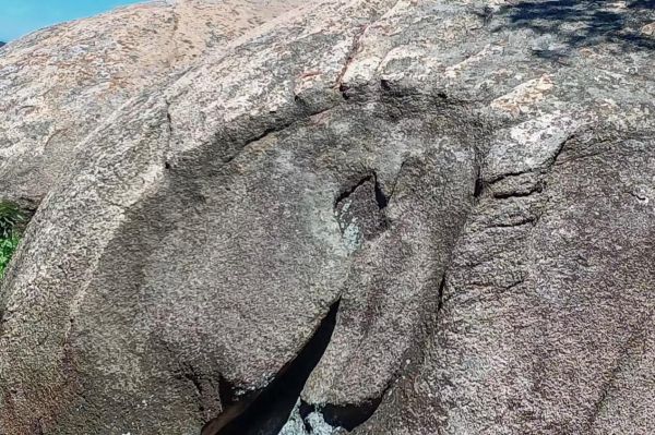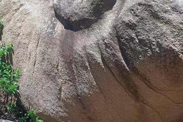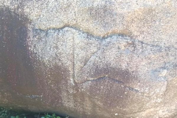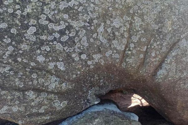 随后,队员们乘船前往东山岛东门屿主峰文峰塔东侧的太阳纹岩画群进行实地考察。东门屿岩画群是一处依山石自然形象经过人类进一步凿磨而成的岩刻作品,九组岩画均雕刻于风化残留的花岗岩巨石上,岩刻内容大都以半圆形以及芒线来表示太阳亦或生殖崇拜图像为主。其中由于地理位置和气候条件的风化作用,东门屿岩石受到侵蚀程度不一,形成不同的奇特形态,比如“大地母亲”“壁虎戏象”“鹰嘴岩石”等。