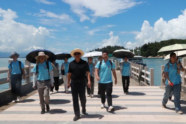 文化是族群特质呈现延续的密码。东山东门屿史前人类活动留下的系列岩画表意符号,对深化探究南岛语族及闽台文化的内在思想观念,辨析中华民族共同祖先文化创造的同一性与相似性,具有重大价值。为传播这一共同价值理念与“两岸一家亲”的契合相符,深入讲好两岸共同历史文化的中华故事,7月8日上午,历史地理学院“南岛语族,同源寻根”暑期社会实践队在学院院长王建红教授、地理科学系主任潘大东副教授、辅导员吴志平老师的带领下前往漳州东山县东门屿(台湾海峡西南部海岛—“东山陆桥”的西部桥头堡),考察史前岩画遗迹,探寻南岛语族迁徙过程中的原始印迹。
