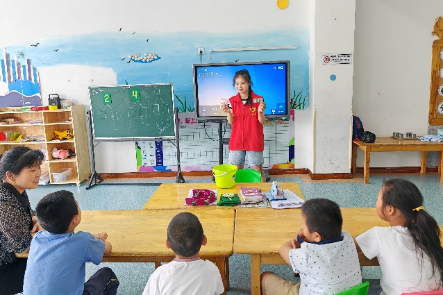 活动期间,“携星行动”实践团的成员们充分发挥了他们的专业优势与创新能力,为幼儿园不同年龄段的儿童设计了一系列寓教于乐、丰富多彩的特色课程与活动。在大班,团队成员通过精心策划的海洋科普课程,引导孩子们探索浩瀚的蓝色世界;通过情绪管理课程和拔河比赛等活动有效帮助孩子们学会了情绪调控和团队合作。在中班,团队成员设计“拔萝卜”游戏让孩子们在轻松愉快的氛围中学会了与他人合作,共同克服困难;以生动形象的动画为媒介,通过珍惜粮食的教育活动让孩子们在欢笑中树立了感恩与节俭的观念;通过故事分享会激发孩子们的想象力与探索欲,为他们打开了一个个奇妙的世界。在小班,团队成员从日常生活技能的教学到趣味运动的参与,再到创意彩绘活动的展现,每一个活动都见证了孩子们的成长与进步。团队成员用他们的耐心与智慧,为孩子们搭建了一个展现自我、勇敢表现的舞台。
