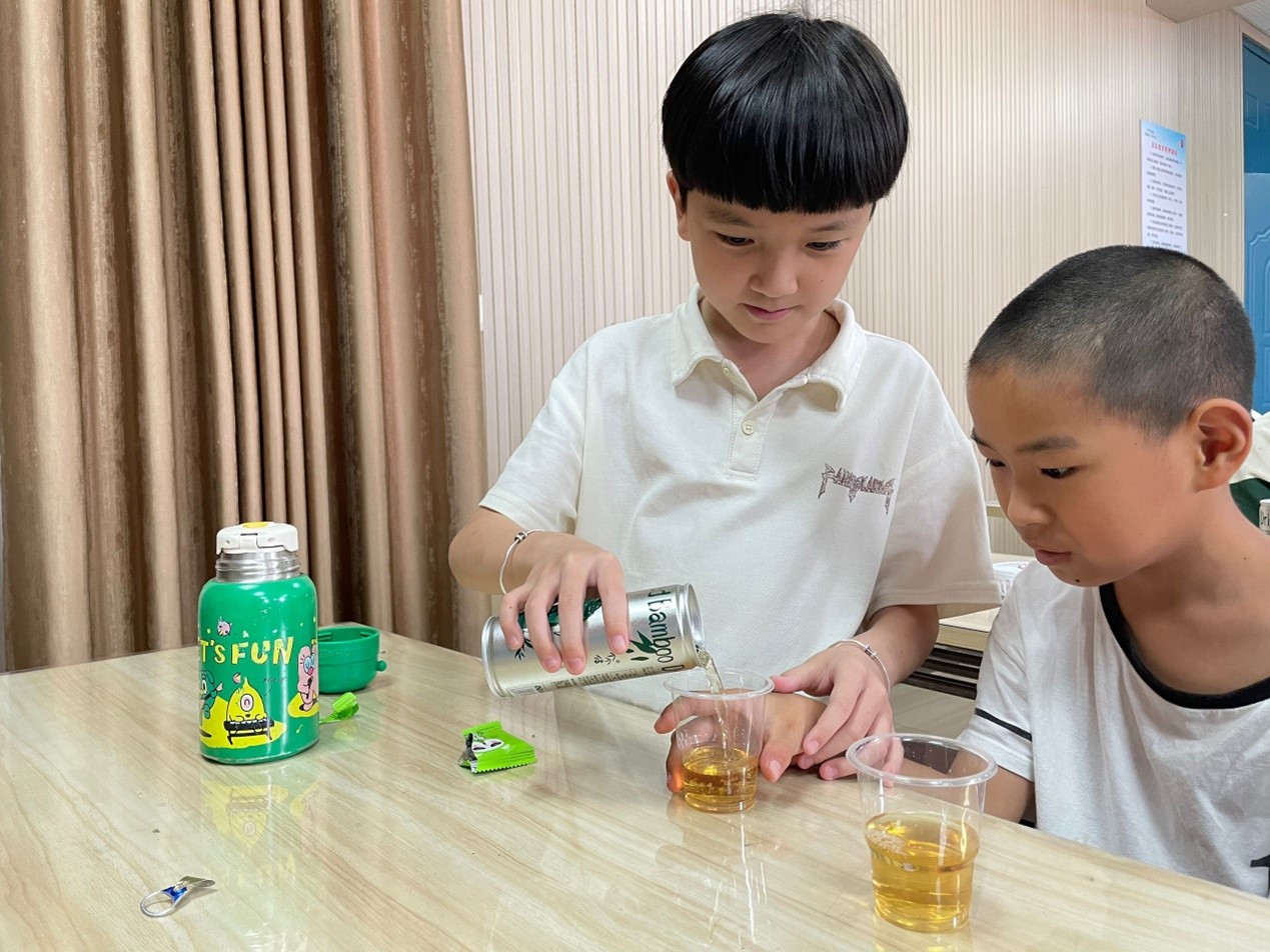 课堂上,孩子们的眼神中闪烁着好奇与兴奋。他们听着实践团成员讲述竹子在中华民族历史长河中的故事,品尝着用竹子制作而成的竹饼干,喝着竹子中提取成分而制成的竹饮料。那一刻,他们仿佛穿越了时空,与古老的竹文化进行了一场亲密的对话。