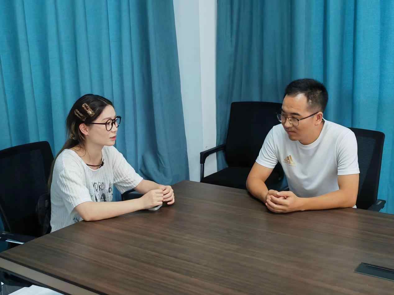图为实践队队员采访王家岭村干部 中国青年网通讯员 肖景霞 摄