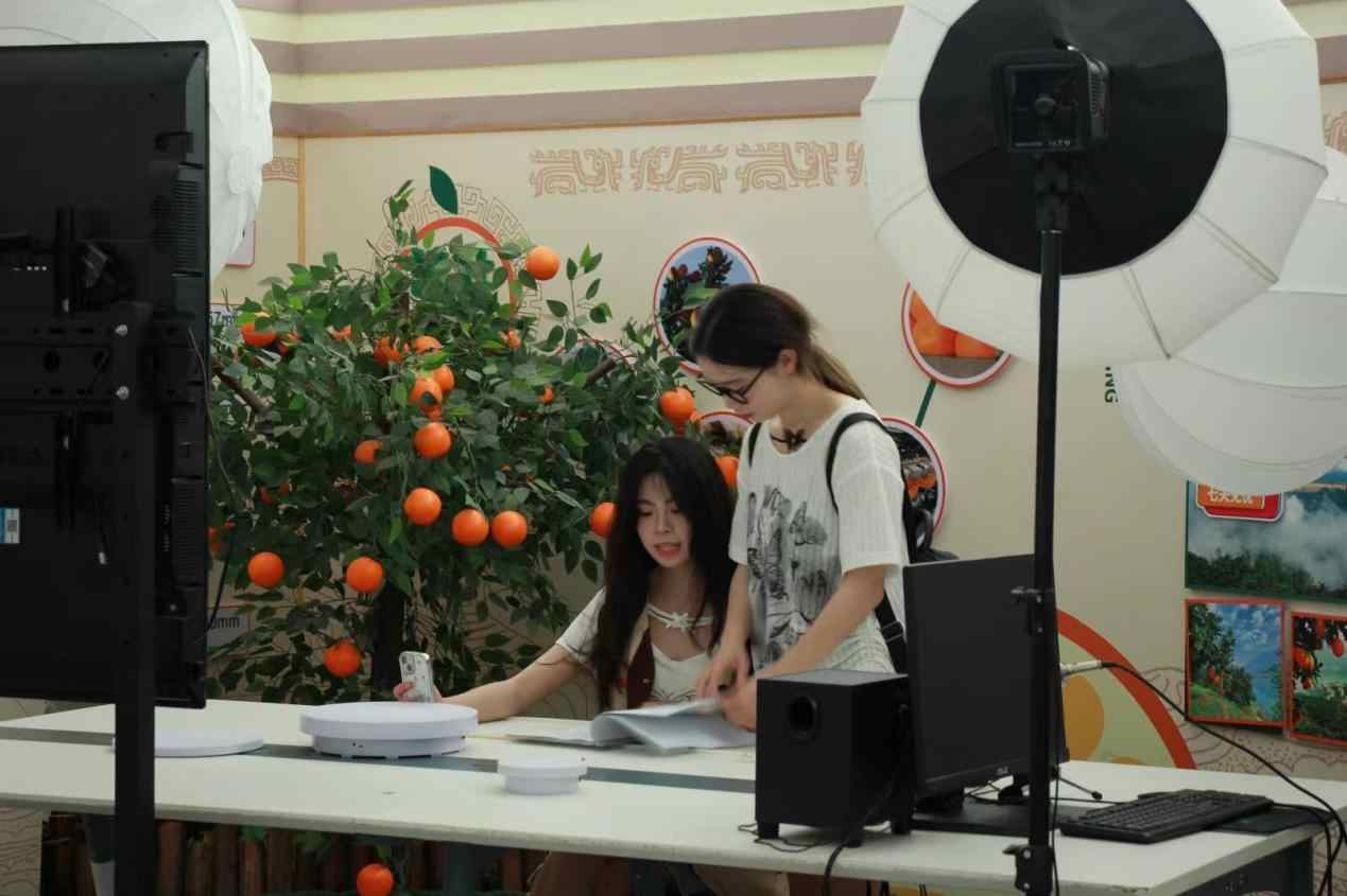 图为实践队队员模拟脐橙销售电商直播的场景。 中国青年网通讯员 邵文妹 摄