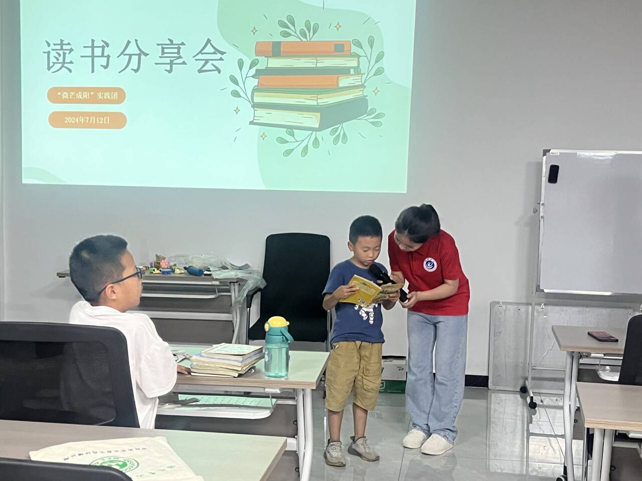 2024年7月12日下午,池州学院“微芒成阳”支教志愿服务队为田园课堂的小朋友上了一次读书分享会。大家通过分享各种经典作品,共同体验了阅读的乐趣,激发了孩子们对书籍的热爱。