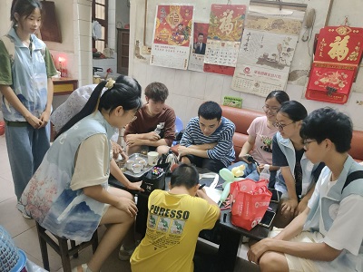 经过了解,大家得知这次陪伴的两个小朋友都是智商发育迟缓两到三年。实践队员们提前准备了送给小朋友的小零食和活动工具,包括了可以折成各种造型的长气球,可以画画的布袋和马克笔等。为了可以吸引小朋友的注意力,实践队员们提前两天在民宿里学习怎么用气球折出可爱的小狗,小花等等。