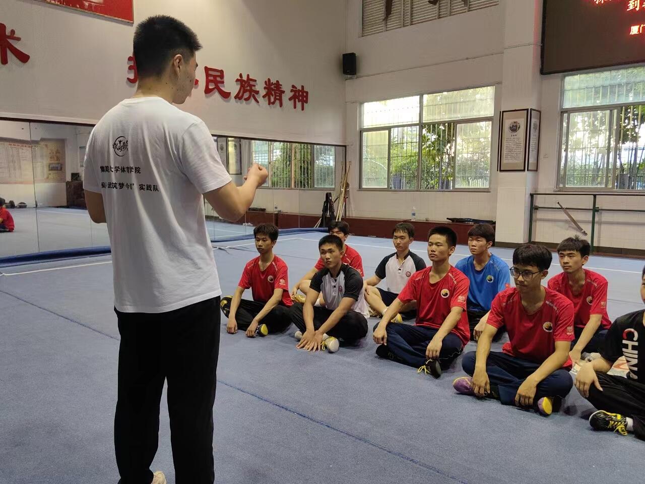 图为实践队员孙宏磊向厦门市乐安中学武术单招学子分享备考经验 陈静莹摄