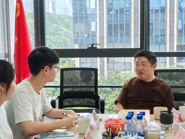 本次交流活动由重庆大学“习语新声”实践团发起并联系,活动当天,企业创始人和几位主要负责人与实践团成员进行了深度的交流,并向成员们讲述了企业应如何把握新质生产力的发展机遇,推动自身的技术创新和业务模式创新等问题。