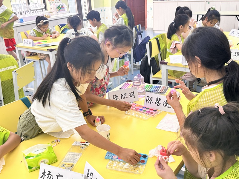 (图为孩子们正在创作石膏娃娃 吴昕予摄)