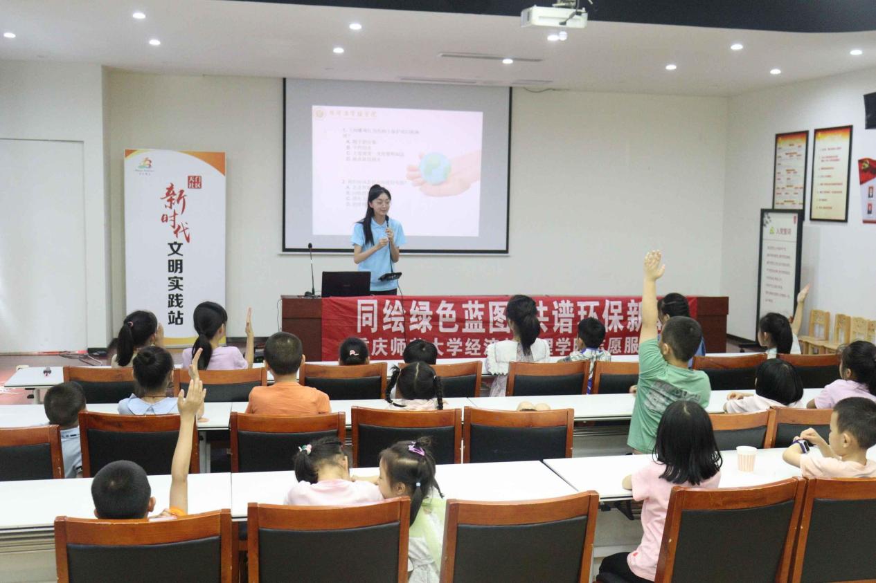 7月12日,重庆师范大学经济与管理学院“大学生在行动”环保科普志愿服务队走进重庆市璧山区璧泉街道天门社区党群服务中心,与小朋友们开展了“同绘绿色蓝图,共谱环保新篇”科普活动,意在引导少年儿童关注环境问题,提高他们的环保认知水平。