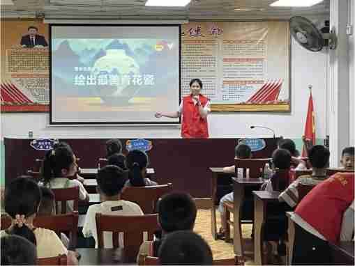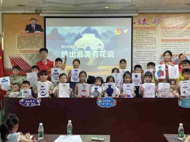 随后,团队成员黄华欣带领孩子们了解我国的青花瓷,同他们讲解青花瓷的发展历史、特点。通过青花瓷图画的课程,培养孩子们的动手能力,提高他们的文化审美,同时也让孩子们了解和认识传统文化的精髓,增强文化认同感与民族自豪感。