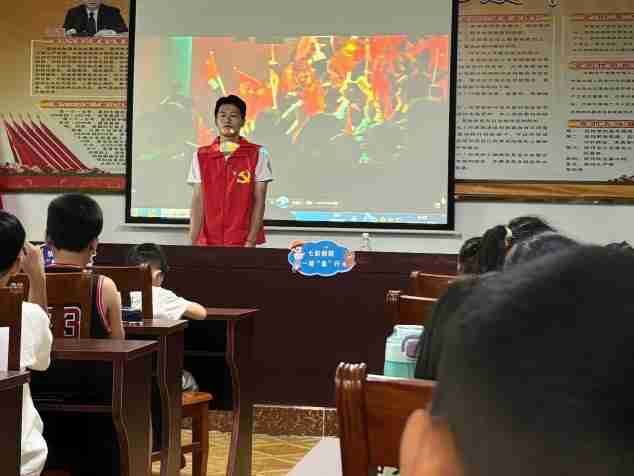 活动中,团队成员张锶楠带领孩子们认识“五旗五徽”,帮助他们了解中国共产党带领人民建设美丽新中国的奋斗历程和光辉历史。该板块以集中授课的方式给孩子们铸牢中华民族共同体意识,努力让孩子们提高思想认识,强化思想信念。