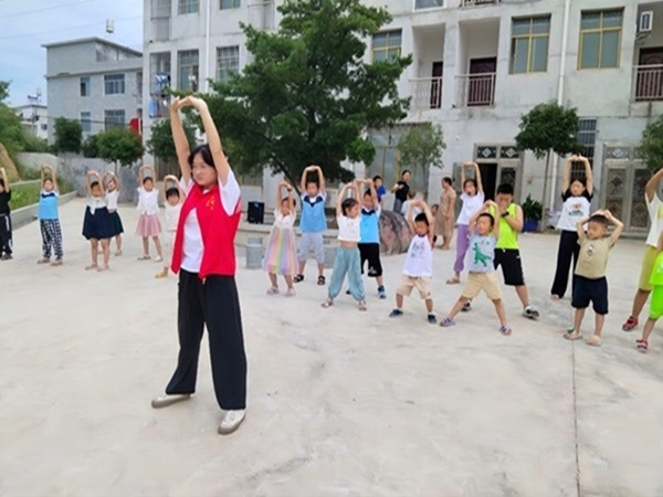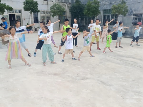 为提高小学生身体素质,增强抵抗力和免疫力,促进身心健康,武昌理工学院“青春筑梦”通城志愿服务队于2024年7月14日在通城县马港镇推垅社区开展八段锦课外教学课程。
