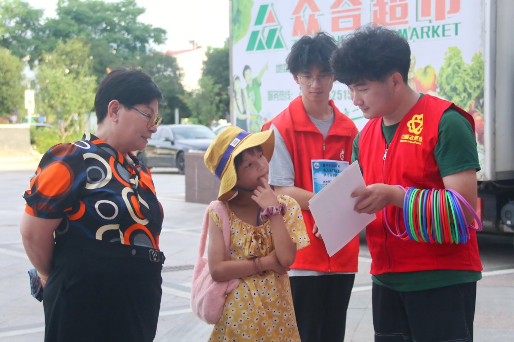 活动现场,两校实践队成员们和愉悦社工志愿者们围绕幸福河湖建设以及环保小常识等内容进行了深入浅出地讲解。他们用生动的案例分析、直观的图片展示,设置了集章打卡换文创的环节,居民们踊跃参加,争相做关于河流保护:河湖生物连连看、垃圾分类飞行棋、垃圾分类套圈等各种环保小游戏。此外,实践队还准备了精美的环保宣传册、小扇子和环保围裙,赠送给积极参与活动的居民,以此鼓励大家将环保理念转化为实际行动,本次活动热度极高,参与广泛,大部分的居民深刻认识到了河流治理对于促进可持续发展和生态环境保护的紧迫性和必要性。