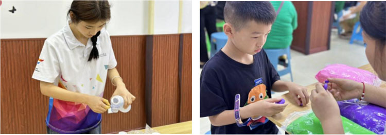 随后,实践团成员为老人们带去了中医经络锤、中医香囊、滴胶标本制作等益智益身工作坊康复作业活动,以及黏土游戏等亲孙互动环节,既锻炼了老人们的动手动脑能力,又增进了家庭成员间的情感交流。