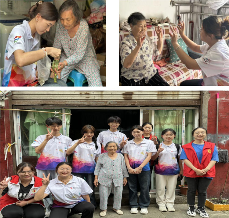 在走访调研活动中,实践团成员前往璧山西街祥和凤苑小区进行入户走访,为老人们送去了他们自己制作的中医经络锤和香囊等,志愿者们陪伴老人聊天,进行手指协调操和防跌倒健康操的教学,并为卧床老人实施音乐疗法,展现了专业的关爱与服务。