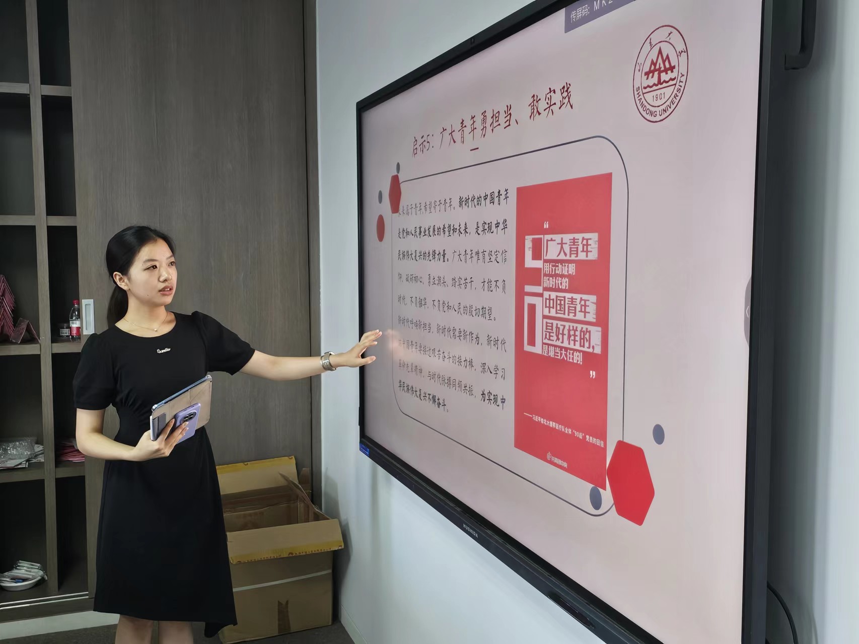 随后,黄一回顾齐鲁大地上的故事和精神,从五个维度总结提炼出新时代奋斗者的“五个启示”:第一,要坚定不移跟党走,以总书记重要指示举旗定向,沿着总书记指引的道路奋勇前行;第二,无论是战略部署单位还是基层落实工作者,都必须保护和运用好红色文化资源,以其为重要载体,加强爱国主义教育;第三,应注重学思践悟,在理论学习和实践感悟中传承红色历史,赓续红色精神;第四,应注重党史教育的广泛面向,并抓好党史学习教育的常态化长效化,坚定信仰信念,增强社会凝聚力和民族认同感;第五,青年作为社会发展中“特殊”的存在,是党和人民事业发展的希望和未来,要注重以知识教育和精神教育相结合的方式,培养符合时代发展需要、助力党和国家进步的新时代人才,为社会注入发展活力。