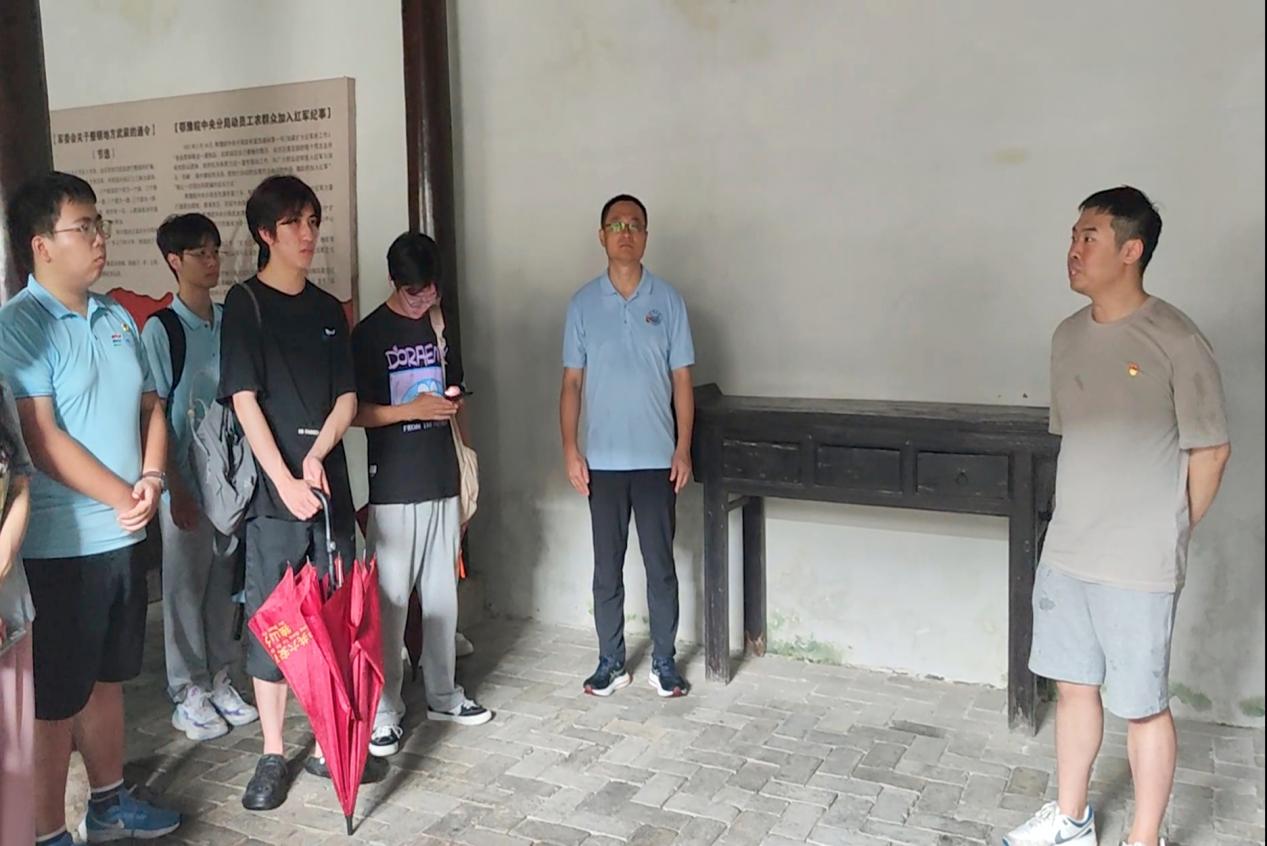 随后,实践团成员们冒雨探访了独山革命旧址群。雨水轻轻敲打着古老的墙壁和砖石,却未能冲淡这里厚重的历史气息。透过迷蒙的雨雾,实践团成员们仿佛穿越时空,感受到了当年革命先烈们在风雨中无畏坚守的身影,聆听到了他们在困境中坚定不移的呐喊。这次探访让实践团成员们更加深切地领略到了革命征程的崎岖与艰难。