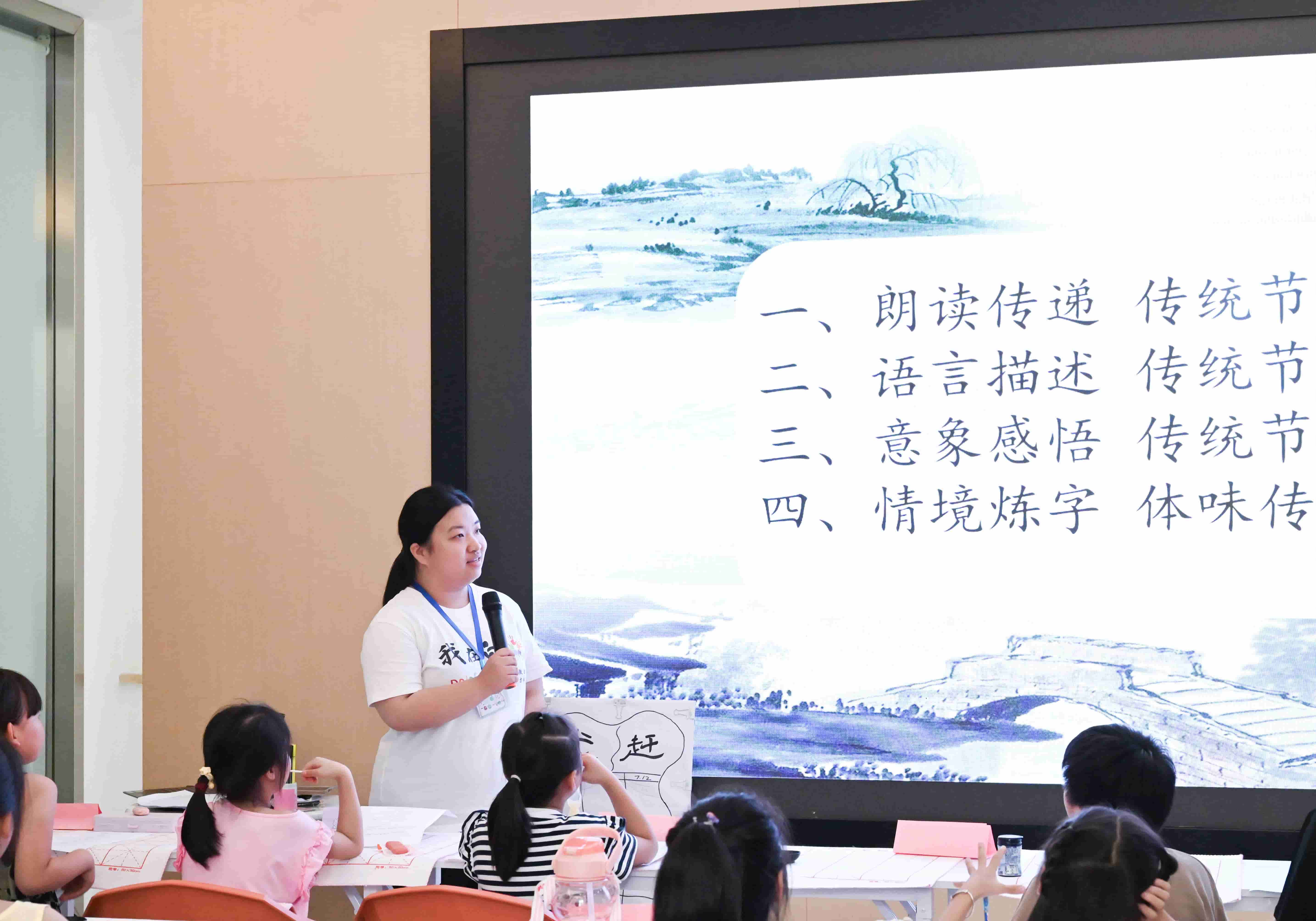 每一个传统节日,都是时间的节点,是历史的回响,是文化的庆典。随着教育改革的深入,中国传统节日教育作为道德教育和行为规范教育的重要载体,在促进人的全面发展方面发挥着不可代替的作用。依托丰富的中国传统文化和节日,实践队成员把握传统节日的教育契机,开展“古诗绘意”课程,围绕“义务教育优秀诗文篇目”,设计和实施了有关新春、清明、重阳等中国传统节日的古诗教学。春风化雨,润物无声。在教育的大舞台上,通过分析古诗中的疑难词和意象,了解重要传统节日的来源,让思维在社区教室碰撞,情感在交流之间传递,中华优秀传统文化在感悟中传承。