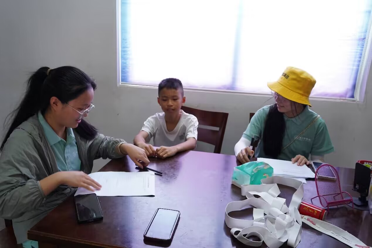 在桐村镇中心小学相关负责人和严村小学退休教师游老师的带领下,实践团成员深入村里留守儿童的家中,了解乡村青少年生态文明素养现状。在实践团成员充满亲和力的笑容以及幽默风趣的提问引导下,原本紧张害羞的孩子们渐渐放下防备,对自己的所知所想侃侃而谈。