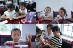 纺织服装学院志愿者根据所学专业知识,手把手带领留守孩童学习手工花制作和彩纸折蝴蝶技巧。小朋友各自挑选喜欢的彩纸和制花工具,在志愿者耐心的上百次重复动作教授中反复学习手工技巧,遇到困难及时向志愿者请教,也热情给其他孩子提供帮助,在兴趣中培养动手能力,在合作中增进情感交流。
