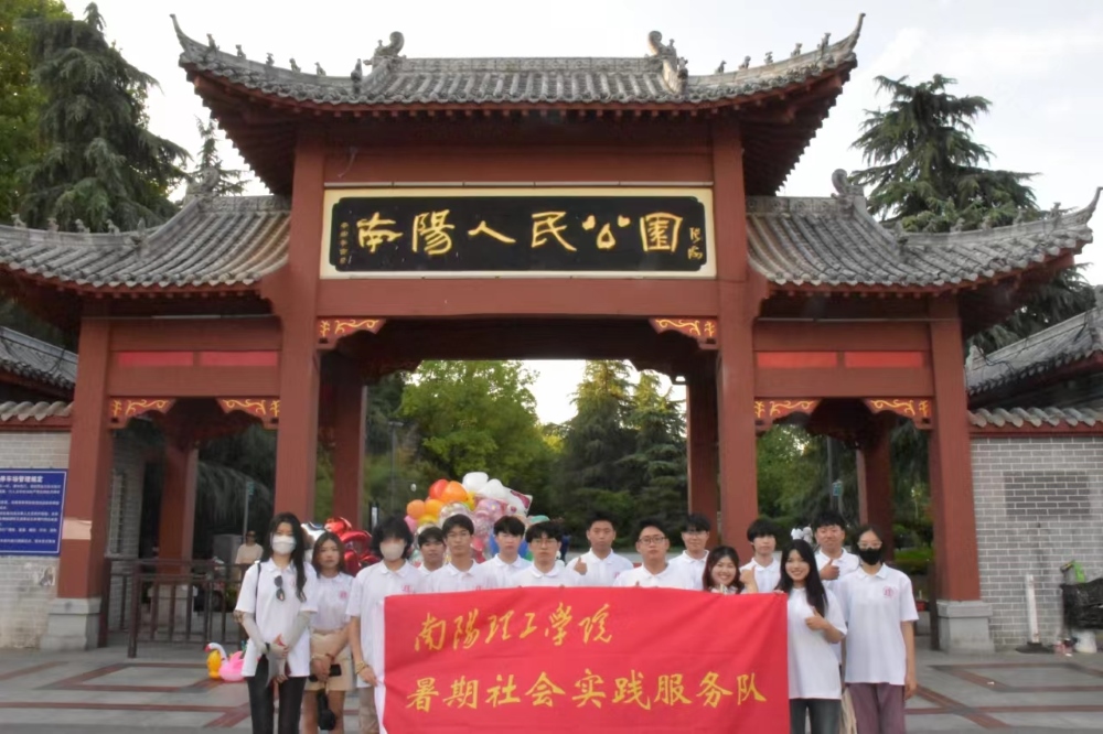 图为南阳市人民公园生命大舞台前拍照留念 南工学子 刘昕 摄