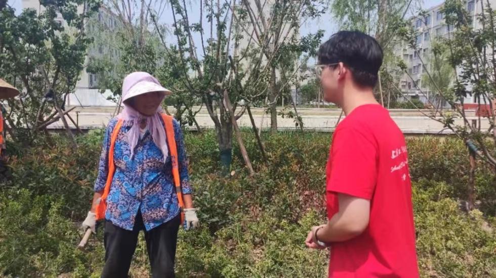 随后,实践团成员们在负责人的带领下走进了建筑一线。在现场,实践团成员和工人们进行了深入的交流。他们专心的进行着自己的工作,实践团成员和负责人叫了多次,一位年过五旬的阿姨才从工作中抽出身来。