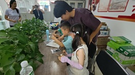 (图为志愿者刘同学给小朋友进行科技知识科普 王馨 摄)
