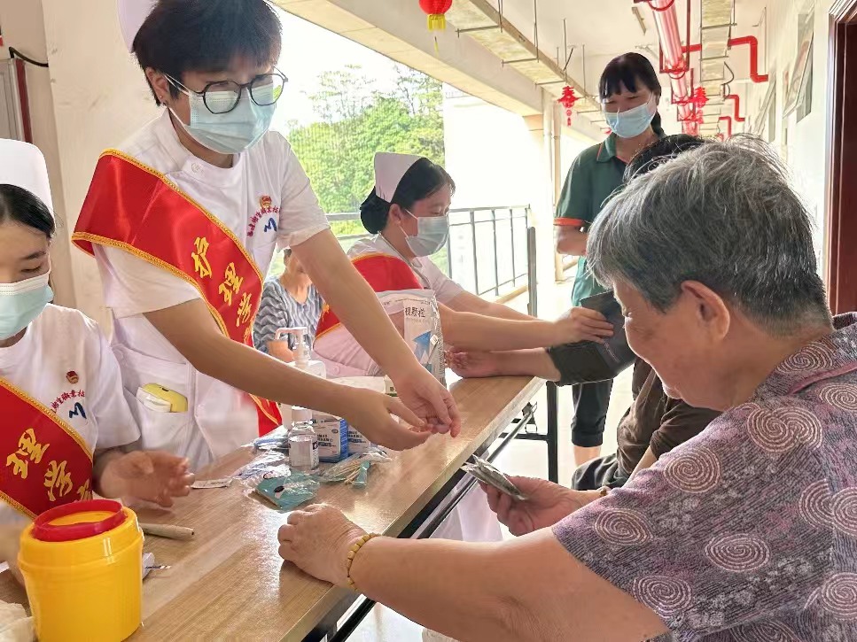 到了下午,志愿者们赴云霄县福利院为老人带去关心和问候。她们为这里的老人测量血压、血糖,她们在操作结束后给老人送去日常备用药品以及针对测量结果提供健康指导,同时也有志愿者们在一旁为等待测量的老人们进行健康宣教。在离开时看到了老人们脸上的笑容,听到了他们心中的感激。