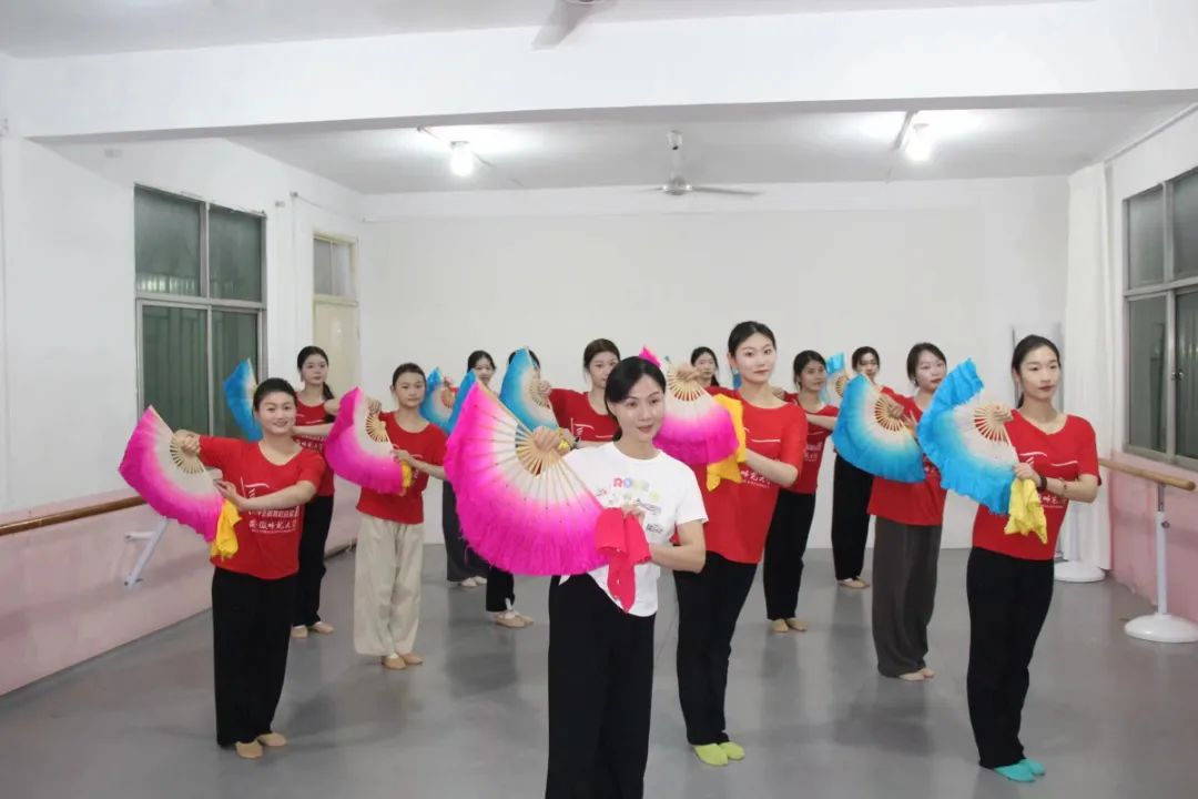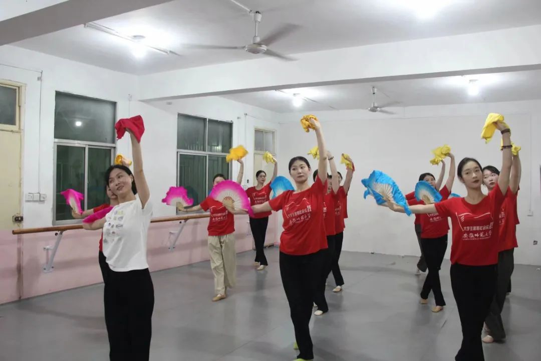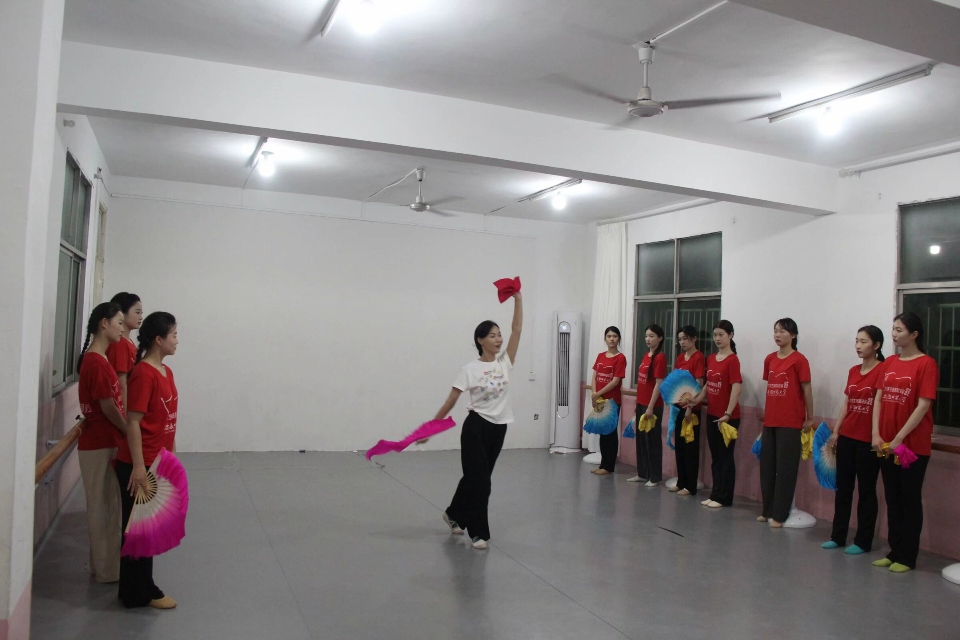 安徽师范大学音乐学院学生来到蚌埠市怀远县跟随河溜镇莲花花鼓灯培训基地负责人石昌艳老师学习了当地特色的花鼓灯。首先石昌艳老师详细的介绍了花鼓灯各流派的特点与代表人物,如“脚下溜,韵律强,身姿美,情感真,神态妩媚”的冯国佩老师;从武术猴拳中吸收丰富营养,颇具刚劲有力,灵巧传神,被称为“石猴子”的石金礼老师。这些了解加深了大家对花鼓灯动作起源的认识,增强了对花鼓灯风格性表演性的把握。