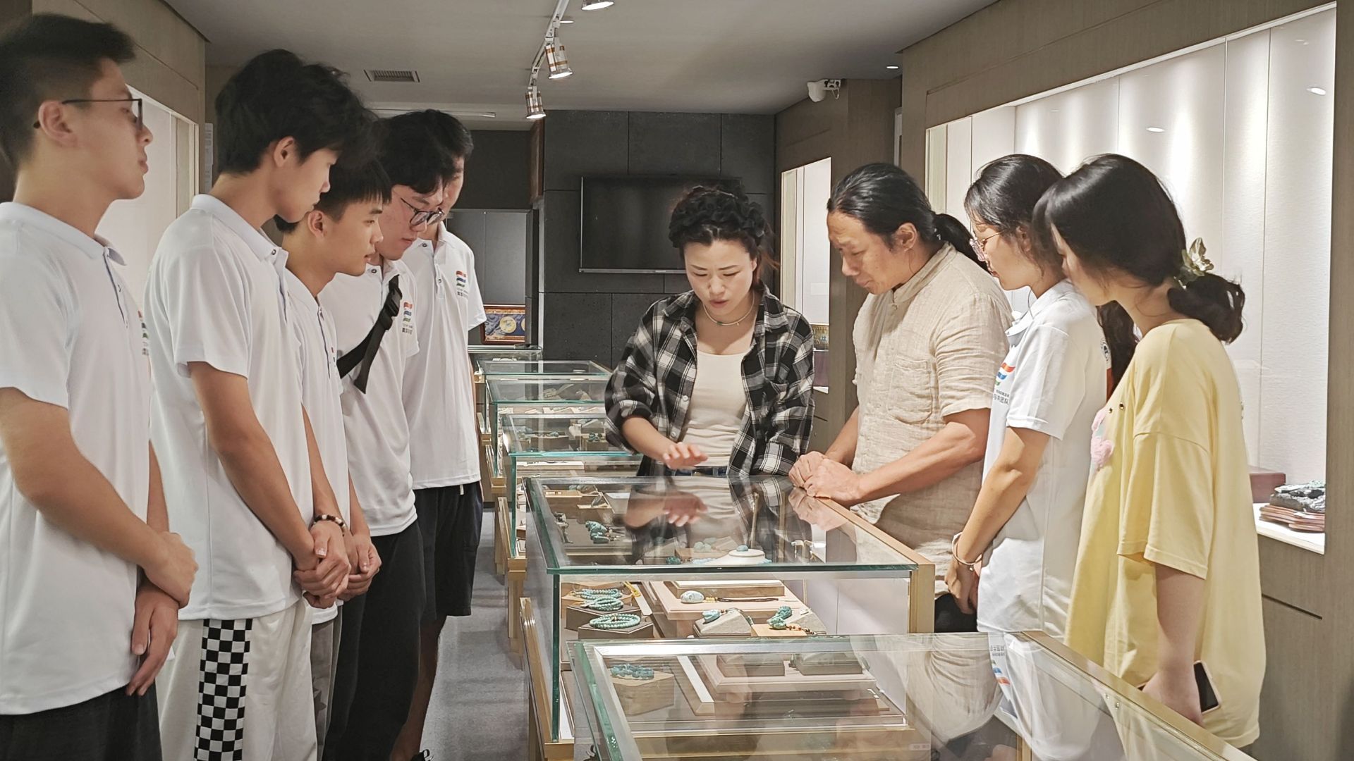 刘老师热情接待了团队成员。他带领团队参观了绿松石产业学院三清公司,介绍了漆+绿松石的前景,参观了艺术设计学院展览馆陶漆金工作品展览,介绍了师生漆艺文化的精美艺术品及其衍生品,让大家对漆艺之美有了直观而深刻的感受。
