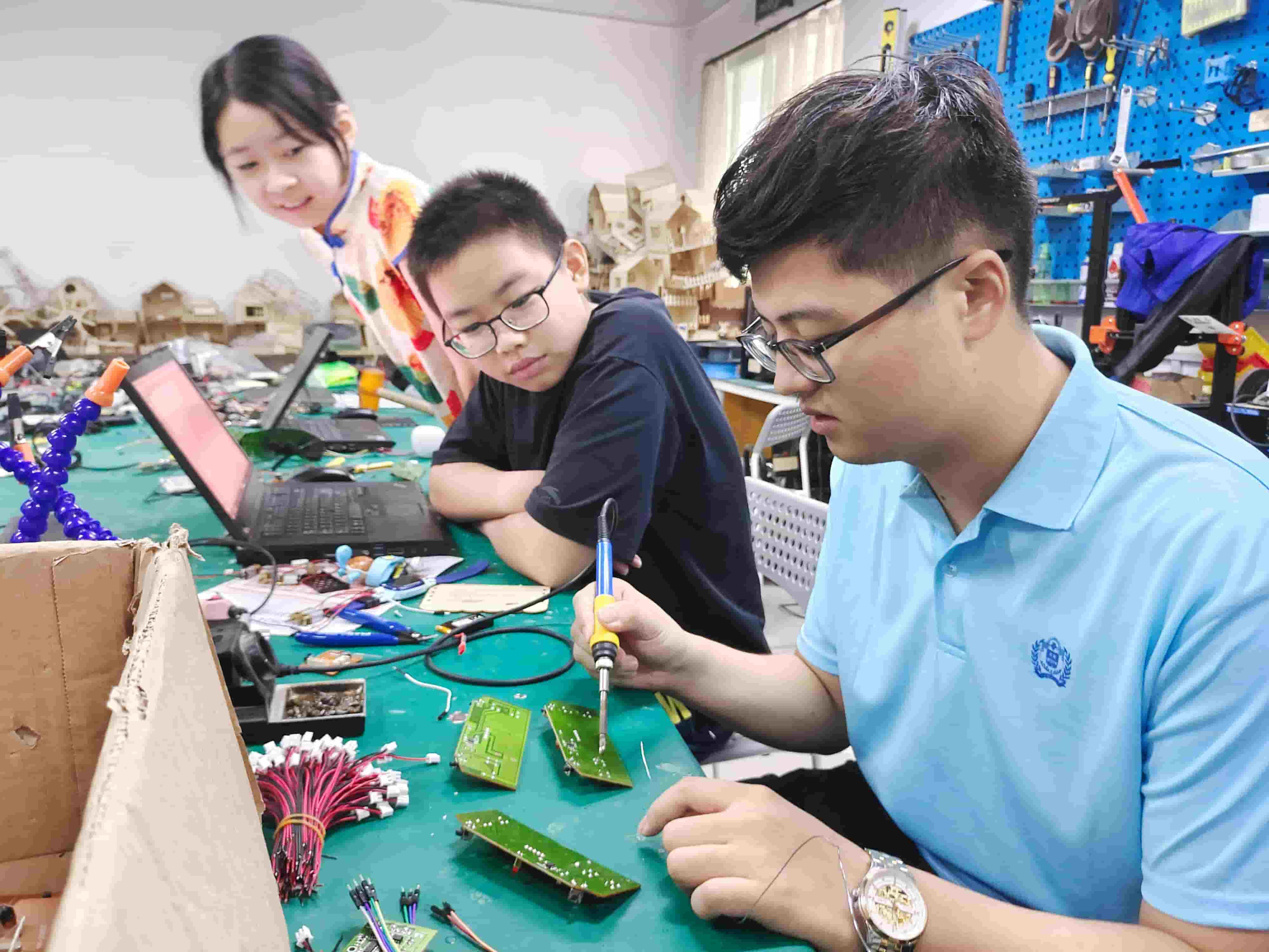 为了更直观地了解“莱德创客空间”的教学模式和课堂氛围,团队成员参与到了课程当中。在开源硬件课堂上,学生们亲手操作电路板、连接杜邦线,体验了从理论到实践的跨越;