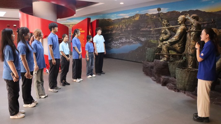 “铮铮铁骨汉,拳拳为民情。气概撼天地,壮志泣鬼神。”那些用扁担挑起重物的劳动者们的雕像,正是扁担精神的生动写照。他们面对恶劣的自然环境和物资匮乏的现实时坚毅的眼神,激励着队员们学习他们心系人民,坚持奉献的伟大精神。“我志愿加入中国共产党,拥护党的纲领,遵守党的章程,履行党员义务,执行党的决定……”庄严的入党誓词在纪念馆中响起。红源实践队中的党员们在领誓人辛福康的带领下举起右拳,面向党旗,重温入党誓词,再一次用铮铮誓言诠释入党初心,坚定理想信念,进一步厚植爱党爱国情怀。