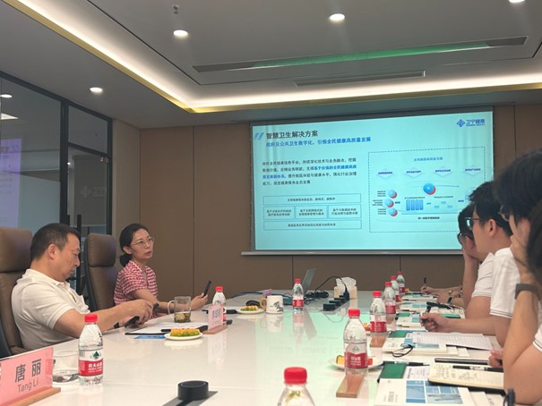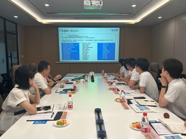 参观结束后双方在会议中展开了交流,公司售前总监杨晓璐女士以饱满的热情和专业的视角,向实践团详细介绍了卫宁公司在医疗信息化领域的现有成就与未来的发展趋势。她指出,卫宁公司凭借连续四年稳居市场占比第一的优异成绩,不仅彰显了其在行业内的领先地位,更以其深厚的技术底蕴、前瞻的市场洞察力以及卓越的服务集成能力,赢得了市场的广泛认可与赞誉。从基础业务的稳固根基,到智能化转型的勇攀高峰,卫宁公司始终致力于推动医疗信息化向更高水平迈进,为提升全民健康福祉贡献力量。
