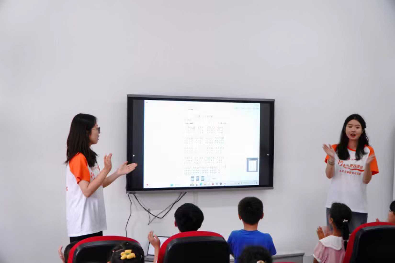 首先开展的是音乐课。成员们用一首孩子们耳熟能详的《稻香》带领他们进入音乐课堂,在活跃的气氛下,成员们向孩子们介绍了奥尔夫声势律动,并带领他们一起跟随音乐律动起来;接着,成员们又向孩子们介绍了柯尔文手势,并以一曲《我和你》引导他们一起做,课堂氛围轻松活泼。