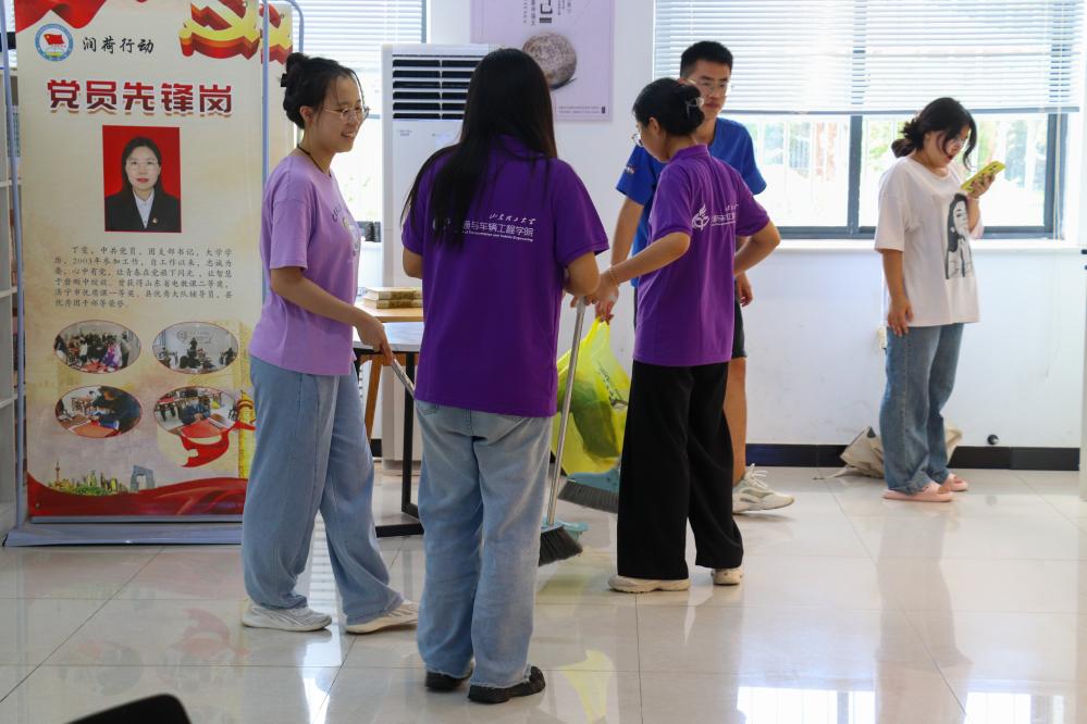 下午三点,在队长李明宇的组织下,实践团开展了对图书阅览室和教室的卫生打扫工作,所有实践团成员参加。在打扫卫生的过程中,成员们首先对阅览室的桌子和椅子进行重新编排,为小朋友们留出充足的活动空间和上课空间,以便于更好的开展教学实践工作。