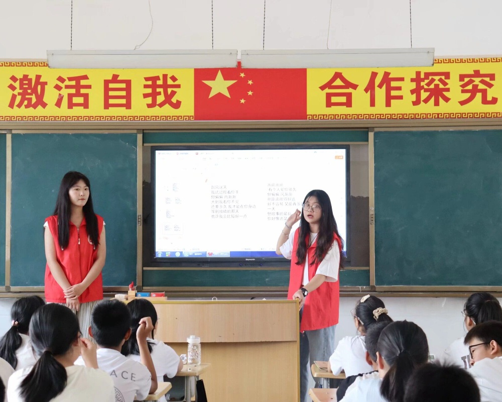 随后,志愿者带领学生们歌唱,聆听每一个音符的跳跃,学生们或引吭高歌,或小声跟唱,不同的音色交织在一起便是天籁之曲。志愿者对所有的学生施以鼓励,一开始害羞内敛的孩子也逐渐放开了声音,歌声响彻整个教室。在每一遍唱罢后,志愿者及时纠正孩子们的发音误区,顺水推舟地普及乐理的基础知识。一双双充满好奇的眼睛,一张张写满期待的面庞,当欢快的旋律响起时,在志愿者温润的嗓音起伏时,一切都化为了专注认真,传达着深切的向往,涌动着真挚的倾诉。