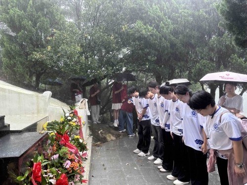 在攀爬过程中,遇到的大暴雨,山路本就崎岖,雨水的加持让此行更添了几分艰辛。然而,这未曾预料的困难,并未减弱我们前行的热情,反而在雨幕中增添了一份坚持的色彩。他们仍然没有放弃追寻红色的脚步,不畏艰难困苦,在暴雨中他们互相帮助、鼓励,共同克服了种种困难。到达卢叨墓后,队员们共同缅怀先烈,表达对先烈的敬仰和对革命精神的传承。