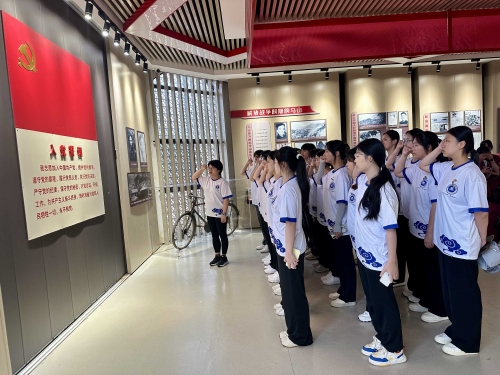 在纪念馆讲解员的带领下,队员们仔细聆听着那段波澜壮阔的革命历程。他们被先烈们不屈不挠的斗志和无私奉献的精神深深打动,心中涌起了一股强烈的使命感和责任感。每一处展览,每一件文物,都是一段段鲜活的历史,我们详细了解了革命先烈的英雄事迹,他们的坚定信念和不屈不挠的斗争精神深深打动了我们。这些故事不仅仅是过去的回忆,更是激励我们前行的力量,贡献自己的青春力量,做到青春为中国式现代化挺膺担当。