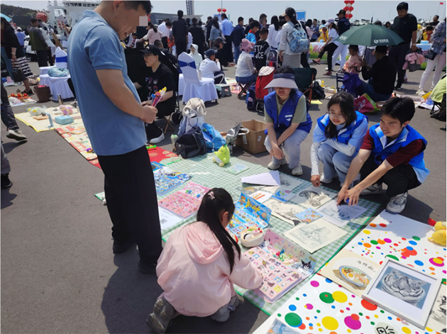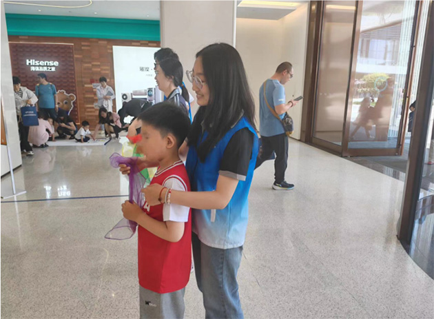 在7月10日儿童节亲子嘉年华活动中,成员们前往崂山玺悦汇协助医教中心带领孤独症儿童进行各种活动。成员们看着小朋友们表演时的专注认真,玩游戏时的开怀大笑,特别是在亲子绘画环节,当孤独症小朋友拿起画笔,在画布上自由挥洒时,成员们仿佛看到孤独症儿童勇敢地走出自己的小世界。成员们说:“孤独症小朋友的世界也是充满着无限的活力与创造力,他们终将在社会这温暖的大家庭中被点亮。”